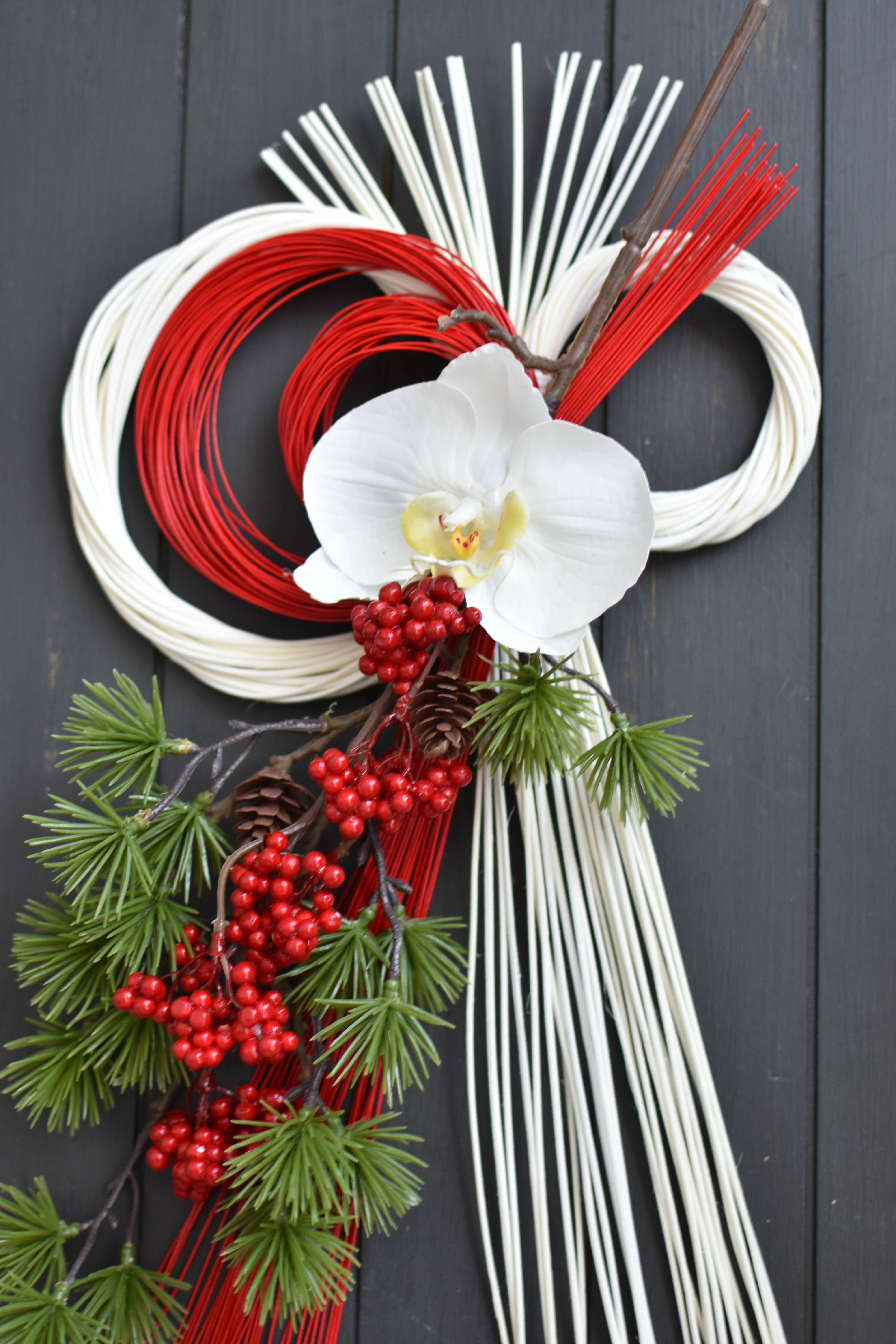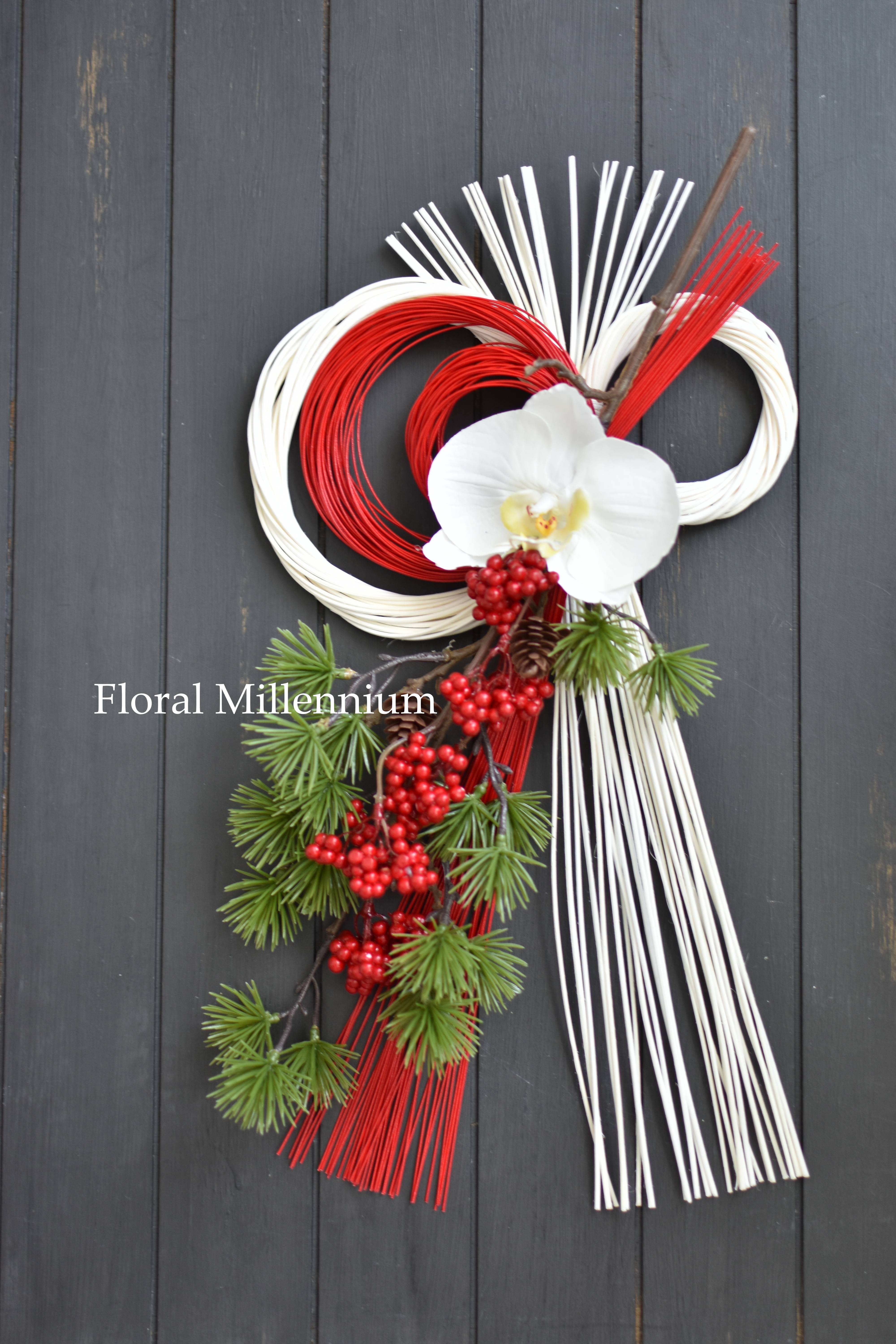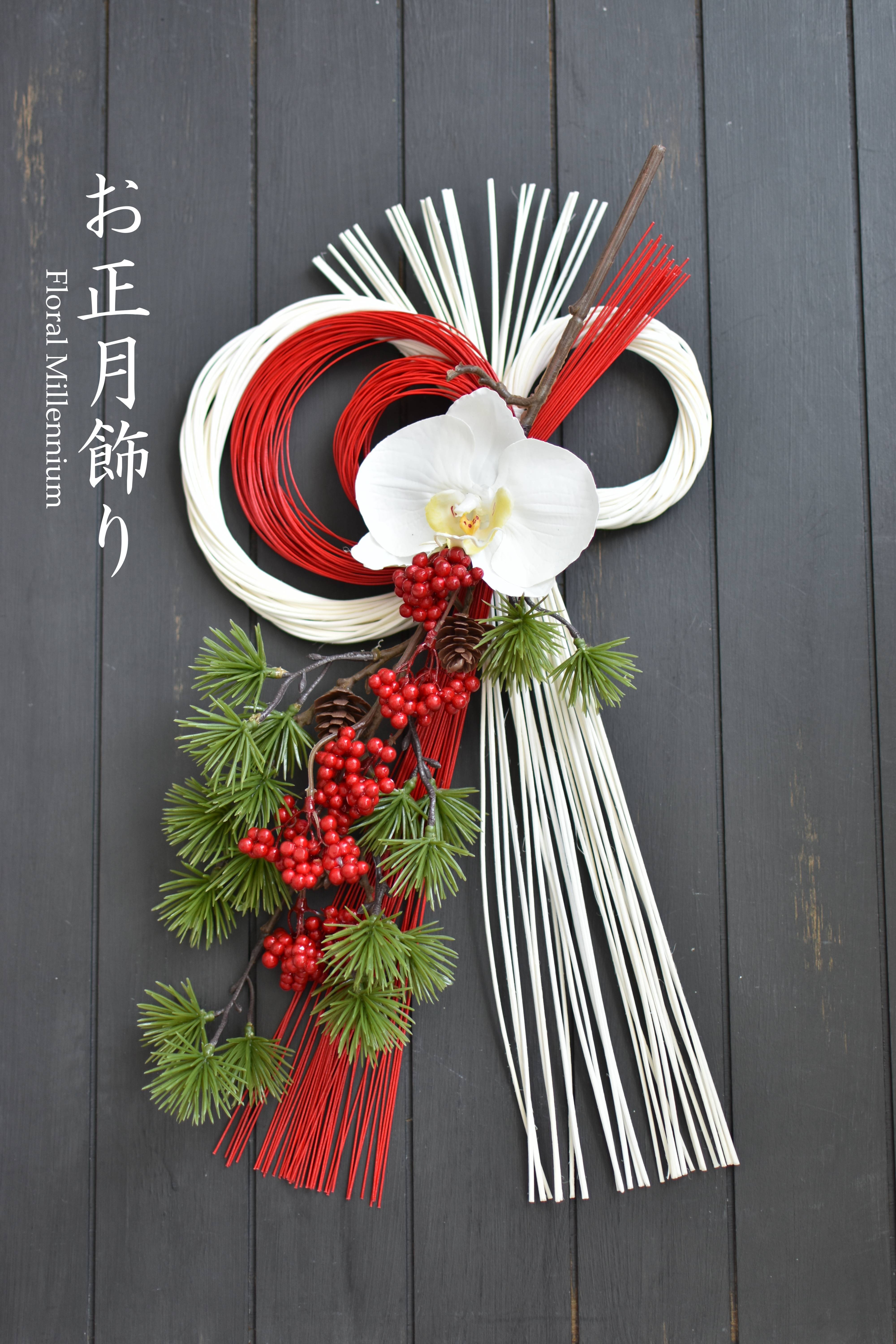 お正月飾りの商品は全てアーティフィシャルフラワー(造花)で制作しておりますので長年お使いいただけます。
