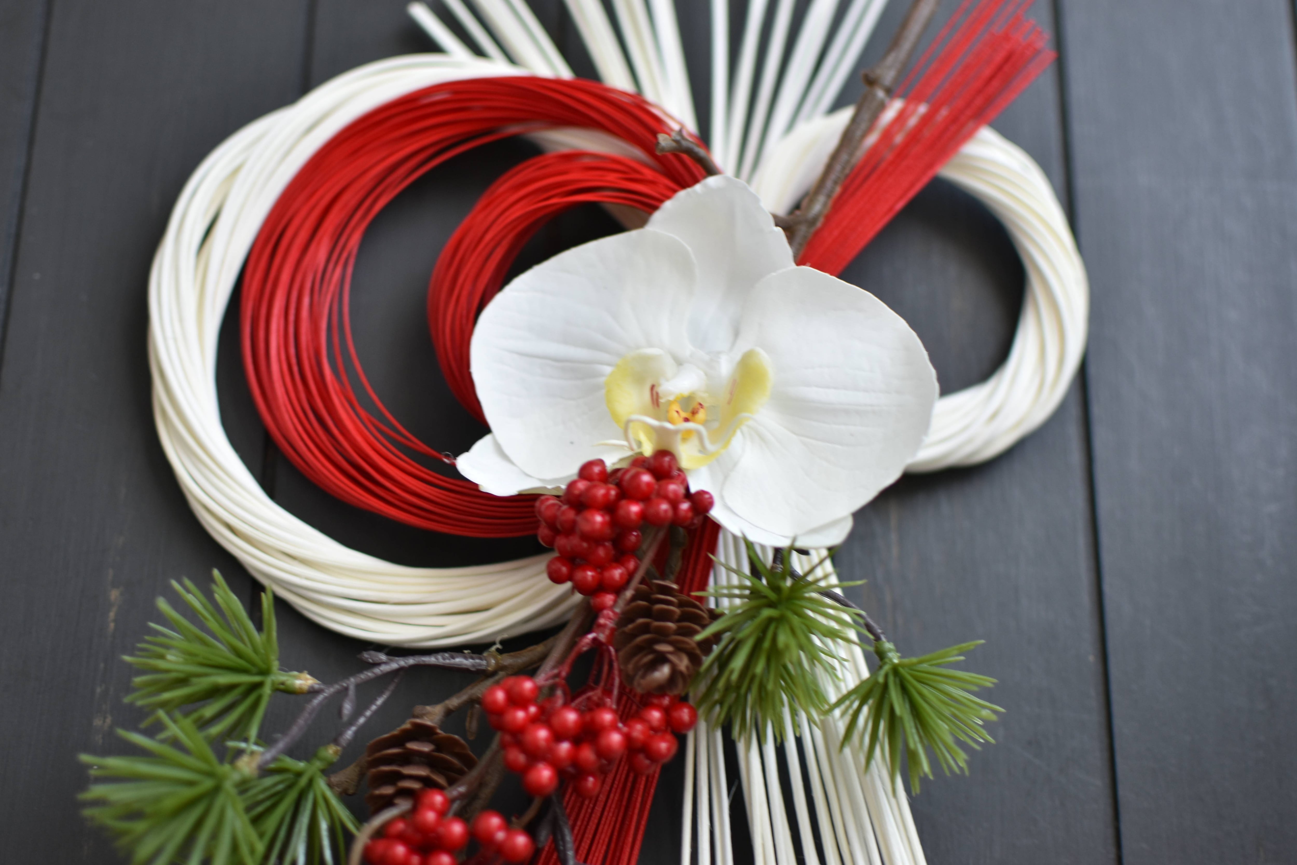 縁起の良いカラーでまとめた華やかで上品なお正月飾り